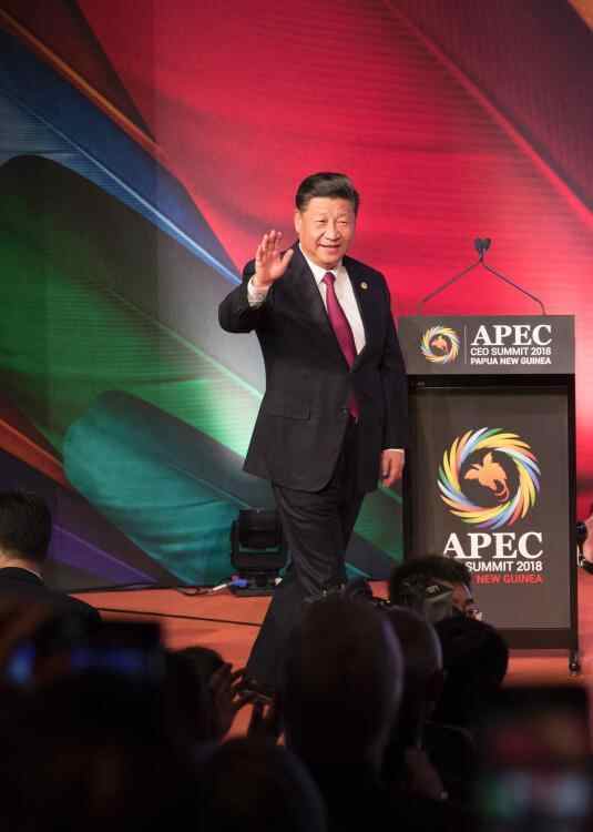 2018年11月17日,国家主席习近平应邀出席在巴布亚新几内亚莫尔兹比港举行的亚太经合组织工商领导人峰会并发表题为《同舟共济创造美好未来》的主旨演讲。这是习近平步入会场。新华社记者 黄敬文 摄 图片来源:新华网