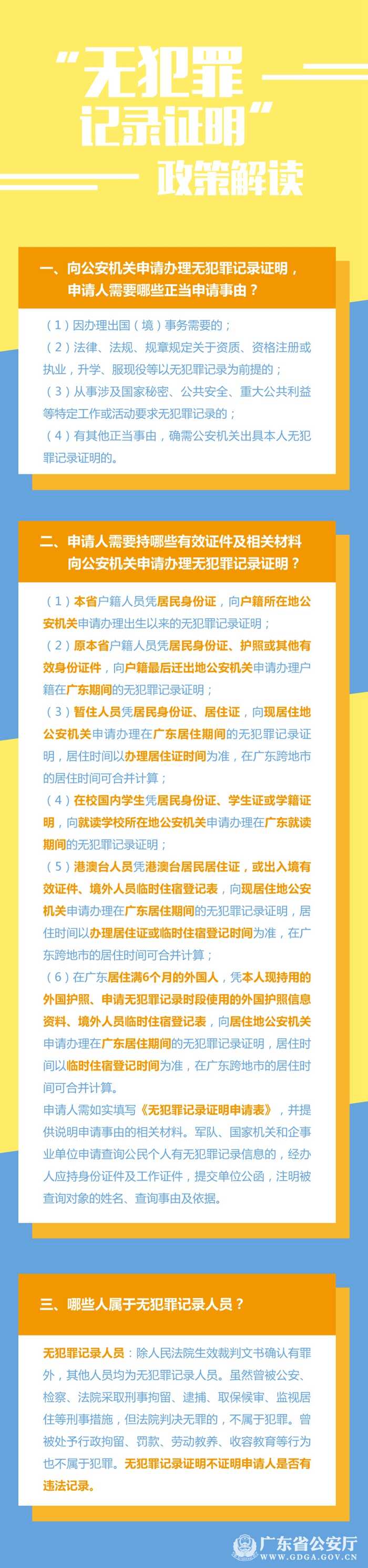 日前,广东省公安厅向各地市公安局印发了《广东省公安厅关于申请办理无犯罪记录证明的规定》(以下简称“规定”),并将从今年3月1日起实施。