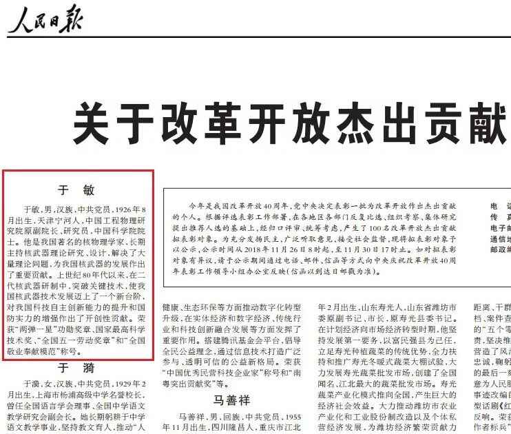 我国国防科技事业改革发展的重要推动者、改革先锋于敏,于1月16日在京去世,享年93岁。