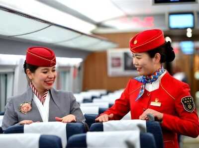 1月20日,在西安北站动车组列车上,列车长(右)指导留学生志愿者整理座椅头枕巾。当日,西安交通大学三名外国留学生志愿者来到西安北站,在中铁西安客运段工作人员指导下,熟悉动车组服务设施,了解高铁列车员工作流程。春运期间,外国留学生志愿者将登上西成高铁列车,与出乘班组共同服务旅客。新华社发(唐振江 摄)