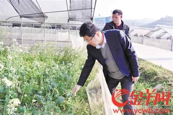 1月22日,羊城晚报社社长刘海陵到英德连樟村蔬菜大棚采访
