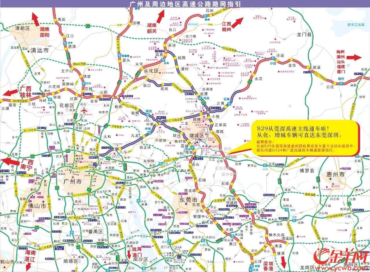 从莞深高速(粤高速编号S29),由深圳外环高速(建设中)经东莞、惠州直达广州增城、从化,全长120.3公里,是一条珠三角南北向交通大动脉,是莞深地区直达增城从化的最短路径。