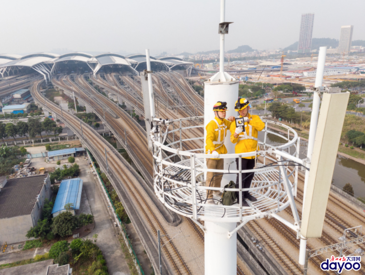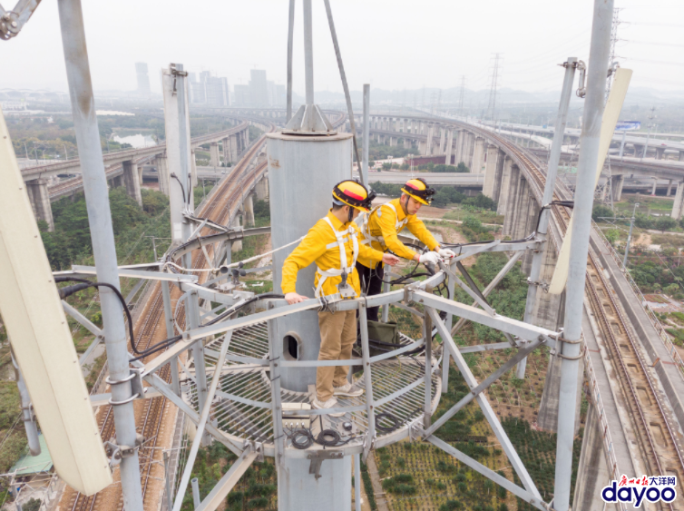 大洋网讯 在华南地区最大的高铁枢纽——广州南站区,活跃着一群鲜为人知的80、90后,他们行走在直插云霄的塔尖,为守护高铁春运安全、守护广深港高铁开通的首个春运,克服身体劳累和心理恐惧,在高铁通信铁塔的塔尖凌空作业,犹如飞燕般翩翩起舞。