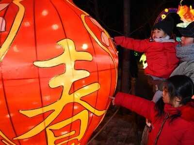 这是2月7日在北京南宫旅游景区五洲植物乐园拍摄的新春赏灯游园会上的花灯。 新华社发(任超摄)