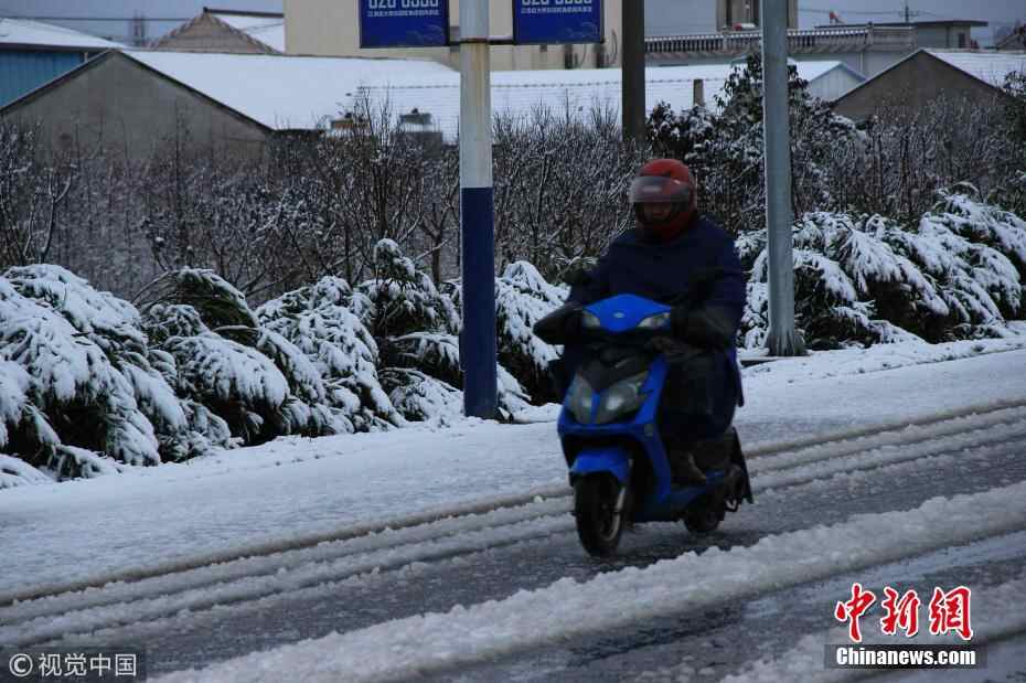 2月8日早上,江苏南通,启东市民在沿江公路上的驾驶摩托车行走。刘畅 摄 图片来源:视觉中国