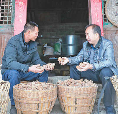 从老茶山走下来,王运洪和同事来到去年脱贫了的村民袁青平家。“老袁,洋芋长得不错嘛!”袁青平正在门前挑选土豆种子。他笑着说:“王书记,过几个月,我能收3000多斤土豆,到时炖点肉,请你来一起吃!”“要得,你记得把茶树种好啊。”王运洪嘱咐道。