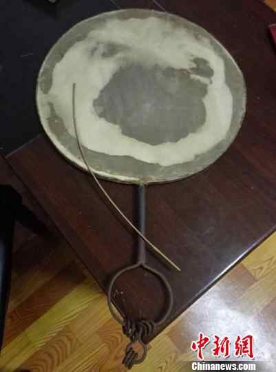 图为端鼓腔表演伴奏乐器羊皮鼓。 苏本善 摄
