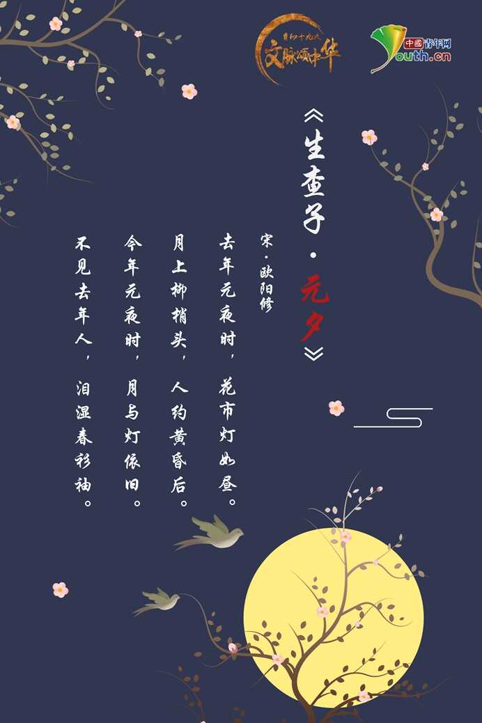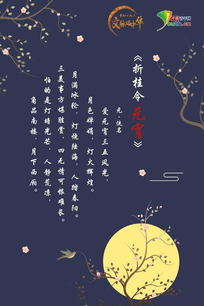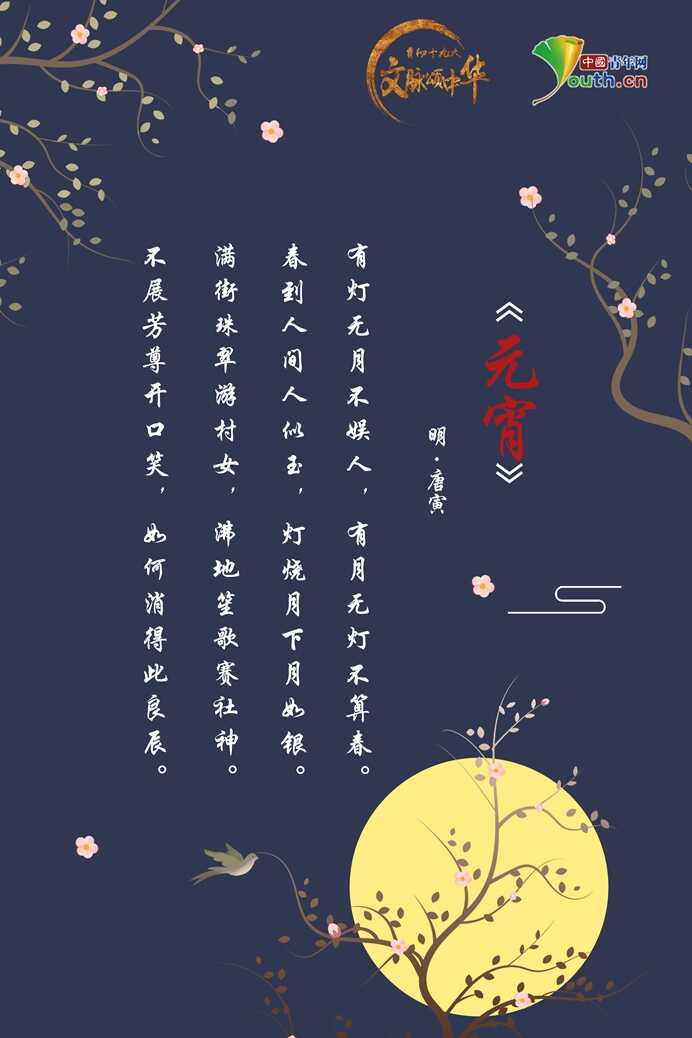 中国青年网北京2月19日电(记者 叶婉莹 实习记者 谭聪)“爱元宵三五风光,月色婵娟,灯火辉煌。”今天是一年一度的元宵佳节。元宵节又称“上元节”,除了吃汤圆、猜灯谜等风俗,古代文人们更是留下了许多“惊艳时光”的诗词。今天就让我们一起穿越时光,品味诗歌经典,过一个充满诗意的元宵佳节吧!