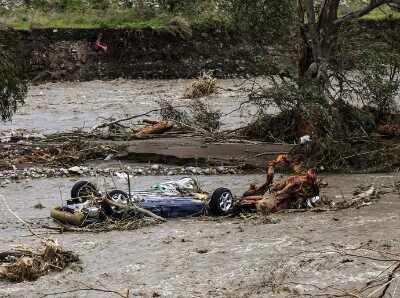 当地时间2月26日,希腊南部克里特岛在遭遇暴雨后,一辆汽车被冲进河流中央。近日,希腊遭遇寒流袭击,多地遭遇暴雨并伴有暴雨和雷暴天气,海陆空交通均受不同程度影响。图为公路中断。