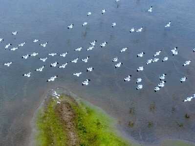 近日,随着天气回暖,我国最大淡水湖鄱阳湖湿地万物开始复苏,春意渐浓,数以万计的候鸟迁徙,点缀出勃勃生机,别有一番韵味。鄱阳湖湿地是最早七个列入国际重要湿地名录的湿地之一,蕴涵着丰富的动植物资源和独特的自然景观。(傅建斌/人民图片)