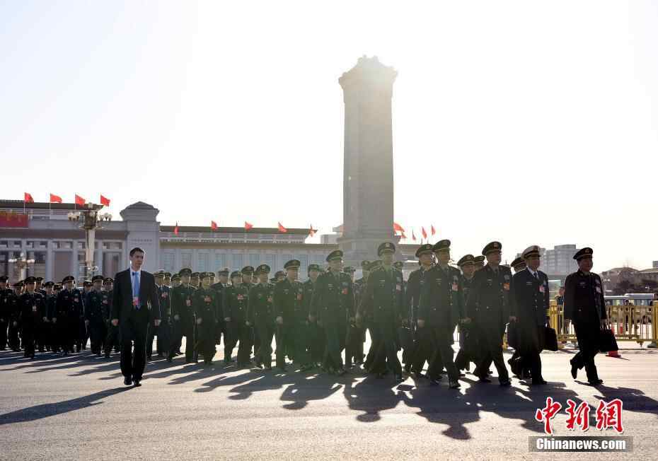 图为解放军和武警部队代表团代表步入会场。中新社记者 侯宇 摄