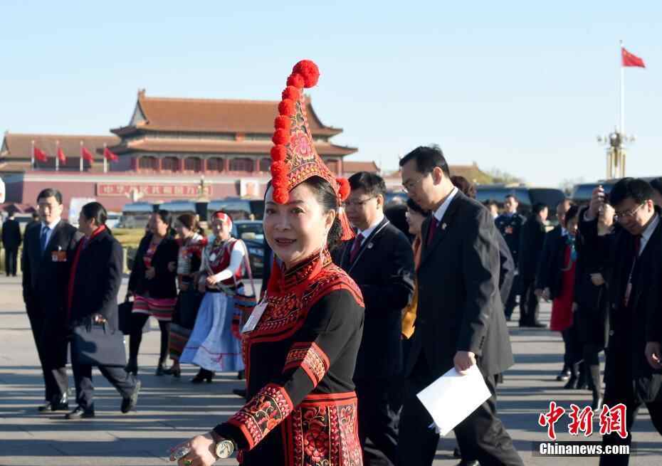 图为罗珺代表等步入会场。中新社记者 侯宇 摄
