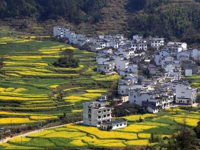 近日,江西省婺源县各地乡村田间满山遍野的油菜花依次进入盛花期,处处金黄灿灿,与白墙黑瓦的徽派民居相映成趣,勾勒出一幅幅靓丽别致的乡村图画,美不胜收。施广德/人民图片
