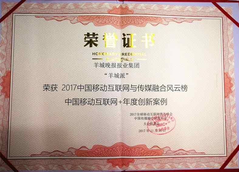 在国家新闻出版广电总局新闻报刊司“第二届全国报刊媒体融合创新案例”(2018)评选活动中, 羊城派 客户端社区活动和社会治理平台作为城市生活服务类的案例,入选“创新100佳优秀案例”;