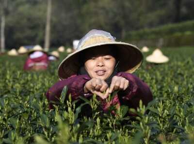 来自全国各地的游客在梅家坞村农家茶楼喝茶吃饭。