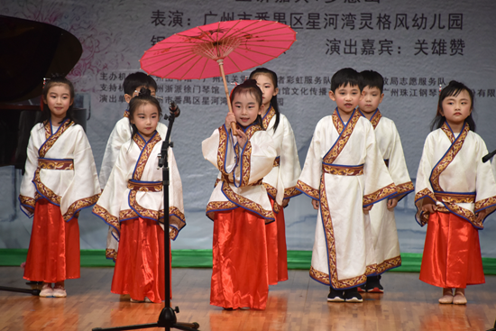 “音乐无国界,希望通过音乐的艺术表达形式,引导幼小的孩子感受伟大而深远的中华传统文化的魅力,同时向世界传播中国优秀的古文化。”星河湾灵格风幼儿园园长吴海燕说。