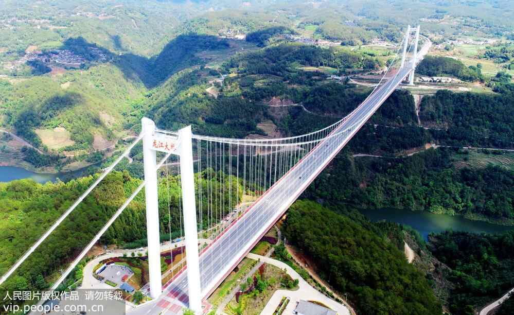 鸟瞰亚洲最大钢箱梁悬索桥——云南保山龙江特大桥