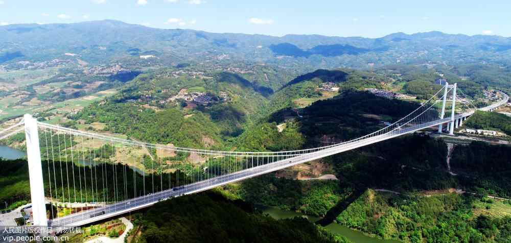 2016年5月1日,经过近5年的施工建设,亚洲最大钢箱梁悬索桥——云南龙江特大桥正式通车。(王华斌/人民图片)