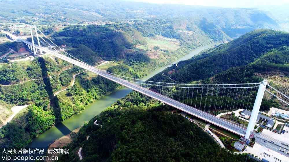 2016年5月1日,经过近5年的施工建设,亚洲最大钢箱梁悬索桥——云南龙江特大桥正式通车。(王华斌/人民图片)