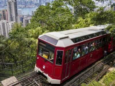 4月22日,两辆相向而行的山顶缆车在梅道站附近交汇。耗资6.8亿港元的山顶缆车发展计划即将展开,发展计划将会添置全新的缆车,每程载客量将会由现时的120人提升至210人,届时乘客候车时间将会大大缩短。山顶缆车将分两阶段暂停服务以配合完成工程。首阶段将由4月23日开始暂停服务,爲期约2至3个月。中新社记者 张炜 摄