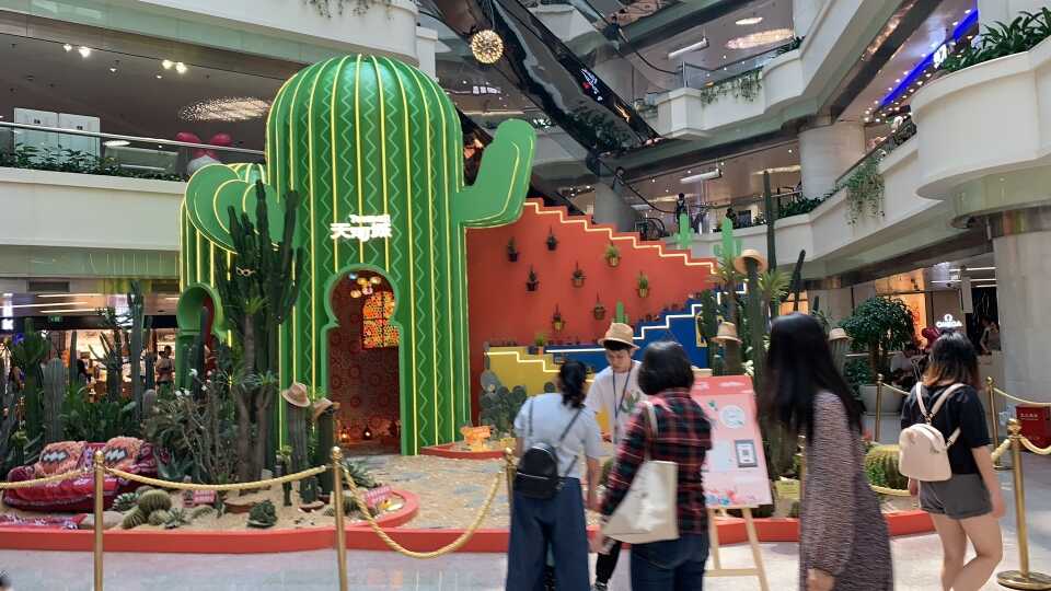 即日至5月5日,国内购物中心首个全真仙人掌自然生态展登陆天河城。该展融入摩洛哥风土人情,将国内外近60种形态各异的仙人掌带入充满异国风情的仙境中。在这一场景中,天河城将2019年的流行色珊瑚橘和仙人掌结合,打造出“冷暖”相融的视觉冲击。仙人掌的冷酷,结合珊瑚橘自然、亲切的色彩,置身展览中让人仿佛走过似水流年般的缤纷绚烂。