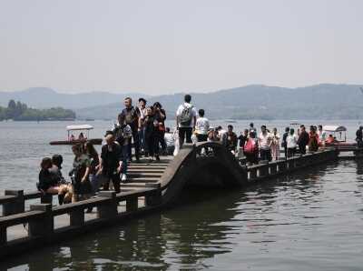 5月3日,杭州西湖迎来众多游客。当日,是“五一”假期的第三天,浙江杭州西湖多个景点人潮涌动。中新社记者 王刚 摄