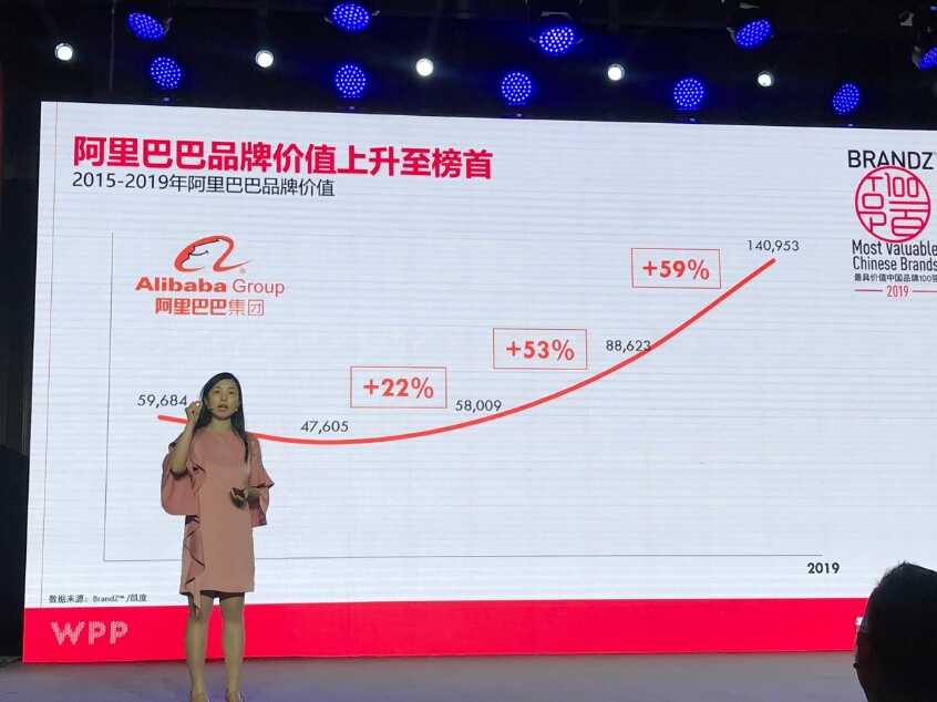 金羊网讯 今天,WPP与凯度共同发布的“BrandZ™2019最具价值中国品牌100强”在北京揭晓。阿里巴巴名列最具价值中国品牌100强的榜首,其品牌价值升至1409.53亿美元,同比去年增长59%。此外,阿里旗下的优酷品牌价值达到50亿美元,涨幅为136%,排名第31位;今年新进入百强榜单的饿了么则排名第24位,品牌价值达73亿美元。