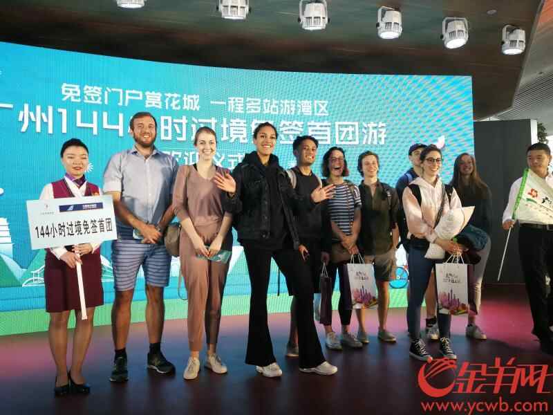 金羊网讯 记者吴珊 通讯员穗文广旅宣 穗空港宣摄影报道:5月12日上午,广州白云国际机场T2航站楼迎来了实行144小时过境免签新政后的首个旅行团,9名来自荷兰、法国、俄罗斯、新西兰等国的外籍过境中转游客在参与了简单而隆重的欢迎仪式后,开启了广州旅游行程。