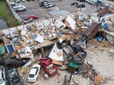 航拍龙卷风侵袭美国俄克拉荷马州 酒店几乎夷为平地