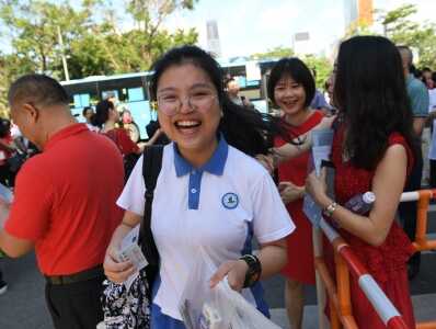 高考首日,深圳天气晴好,家长和老师在校门口为考生加油!金羊网记者 王磊 摄