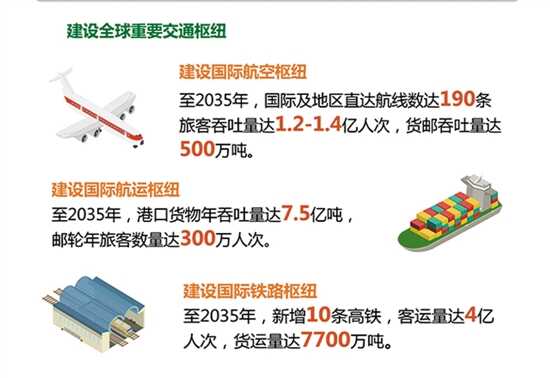 至2035年,国际及地区直达航线数达190条,旅客吞吐量达1.2亿-1.4亿人次,货邮吞吐量达500万吨。