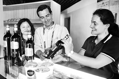 6月21日,北京世园会法国展园内工作人员在准备待售的法国特色商品。光明日报记者 郭俊锋摄/光明图片