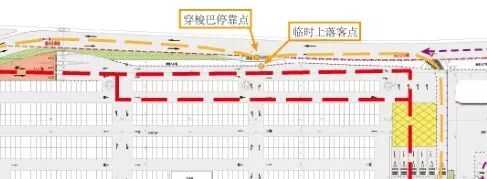 ▲黄色框文字标注点为穿梭巴停靠和上客点