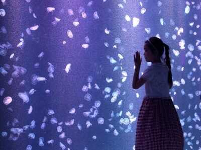 “梦幻水母宫”全新亮相南京海底世界,海月水母、钟水母、狮鬃水母、紫纹海刺等来自全球各地的11种水母“精灵”游弋在水母缸体内,在灯光的照射下变幻出五彩斑斓的色彩。中新社记者 泱波 摄