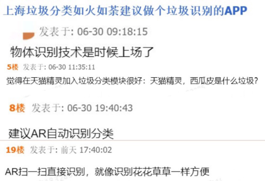 阿里巴巴志愿者、产品专家林杰介绍,近期垃圾分类成为社会热点话题,在阿里内网中,也有员工发帖展开了热烈讨论,如何用技术解决垃圾分类难题?能不能用图像识别的方式来智能分类?