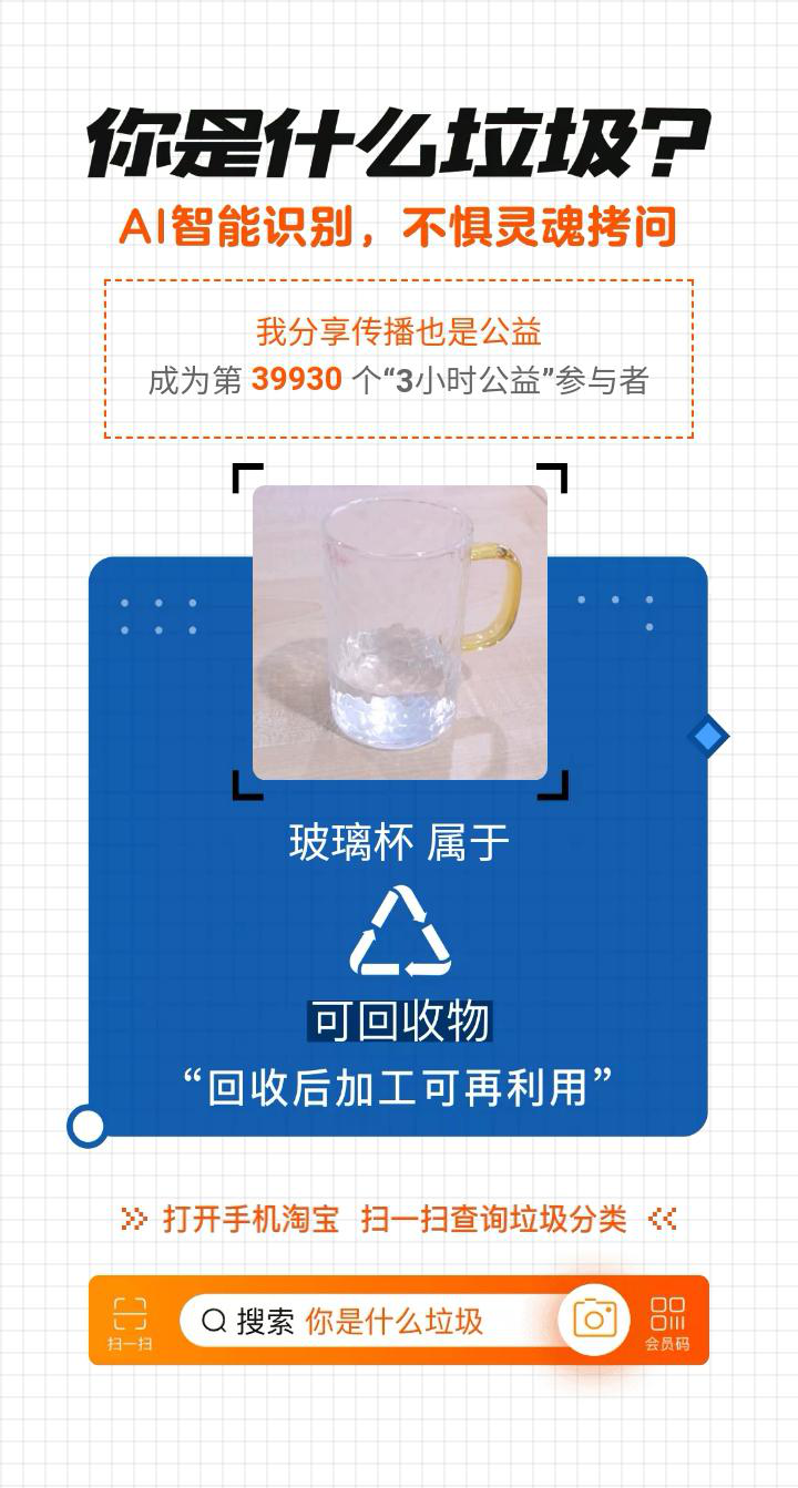 记者打开手机淘宝发现,在常用的“扫一扫”里,新增了一项垃圾分类功能,点击屏幕识别,便可通过AI智能识图功能,识别干垃圾、湿垃圾、可回收垃圾或有害垃圾等。