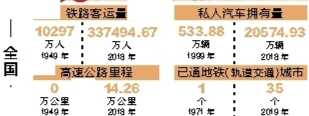 从时速40公里的蒸汽机车到时速350公里的“复兴号”,从能拥有一辆“二八大杠”为荣到共享单车遍布全国,从汽车大排“长龙”坐船过江到桥梁飞架把珠三角连成“一小时生活圈”,从难得坐一次飞机到“打飞的”越来越寻常。新中国成立70年来,中国的陆海空立体交通发展取得令人瞩目的成就。