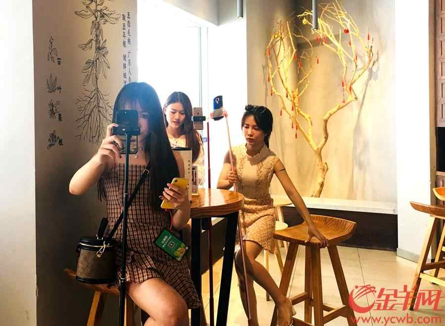 支架一撑,手机一开,补光灯一打!小姐姐们的网上直播便开始了。7月9日,记者在北京路老字号一条街遇到一帮“网红”小姐姐探店,她们穿梭于百年老店中一一“打卡”:去潮州汇馆打探精致潮绣,再到清心堂试下传统的草本饮品,午饭时刻又到皇上皇品尝广府腊味……她们每到一处都引起市民好奇。百年老字号为何能吸引网红?