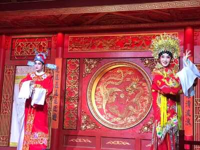 一桌两椅 道具。用木方和木板制成一张长约1米、宽约60厘米、高约90厘米的桌子和两张与之相配的椅子,涂上红色,传统戏曲把它们放在舞台上道具使用,统称“一桌两椅”。它是传统戏曲演出最原始的舞台设施。在演出中,根据桌和椅在不同的舞台方位、不同的摆放方法,显示各种戏剧地点和环境的变化。把椅子放在舞台正中的桌子后面表示是公堂;两椅分放在桌子两旁表示是客厅;椅子放在斜摆的桌子后表示是书房,桌子和两椅组合搭配,还可以在舞台上表示山坡、城楼、点将台、卧床、桥梁等各种戏剧环境。“一桌两椅”这种戏曲艺术特有的表现形式,为戏曲载歌载舞的表演提供了最大限度的自由和条件。随着粤剧进入城市剧场,在镜框式的舞台演出,其舞台艺术观念也产生与之相适应的变化和发展,舞台各种表现手段争相出现,粤剧舞台上的“一桌两椅”,已经基本回复到桌和椅的自身功能了。