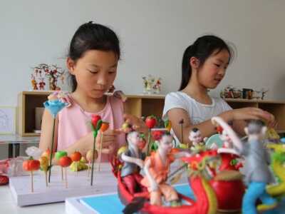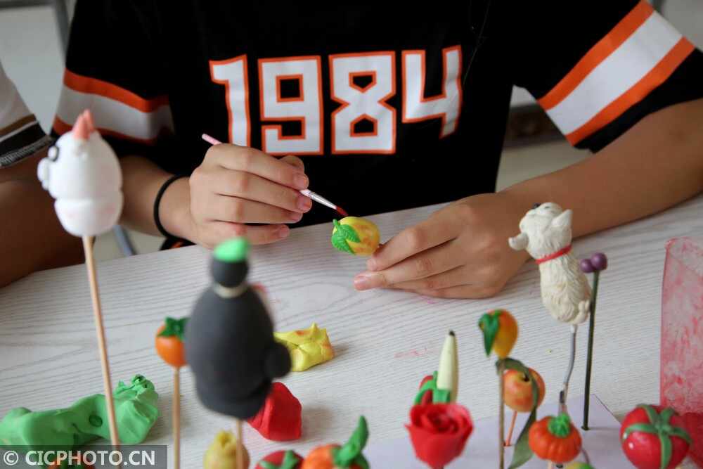 2019年7月14日,在连云港市赣榆区一家培训中心,暑期中的学生在学习非遗面塑制作。CICPHOTO/邵世新 摄