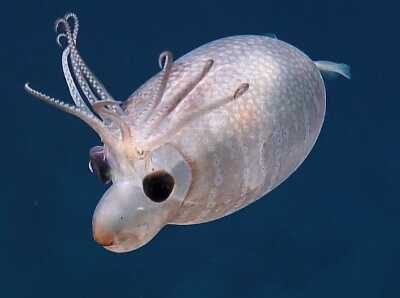 当地时间7月3日,美国非营利组织“海洋勘探信托组织”的研究团队在水下1385米的巴尔米拉环礁发现了一只俗称“小猪鱿鱼”的罕见生物。它看起来半透明,身形小且圆胖,脸部有像猪鼻子的虹吸管,触须长在头上,还有一双黑亮的大眼,看起来像猪又像鹿。“小猪鱿鱼”学名是Helicocranchia pfefferi,属于章鱼科,主要通过装满氨气的内腔调节浮力。外观可爱的“小猪鱿鱼”除了鼻子圆滚像“猪鼻子”,头顶上的触角杂乱,看起来就像“一头乱发”,也有人戏称像驯鹿的鹿角。图片来源:视觉中国
