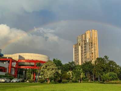 7月23日晚,雨后的广州出现了少见的彩虹。网友“瑞气呈祥”摄