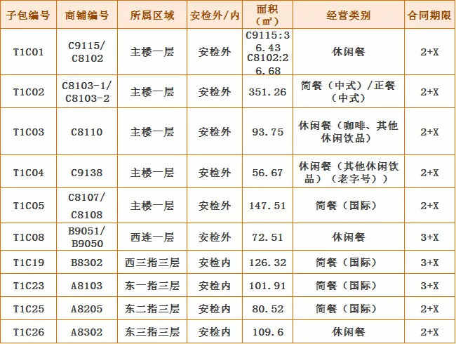 鉴于一号航站楼未来的规划和改造需求,本次项目合同期采用“基础合同期 +X”的方式,分为“3+X”和“2+X”两种。基础合同期分别为3年和2年;“X”为合同顺延期,时限不大于2年。即:基础合同期满后,合同期自动顺延,合同顺延期限不大于2年。在基础合同期满后,招商人有权根据航站楼的规划调整或相关改造需要与中选人终止合同关系并收回场地,招商人将提前一个月告知中选人,中选人须无条件配合执行。