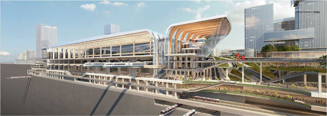在慢行系统方面,采用多层次立体开发模式,形成以白云站为核心的24小时开放的空中通廊和地下通道慢行系统,联通站体及周边综合开发区域,打通东西向步行道路。