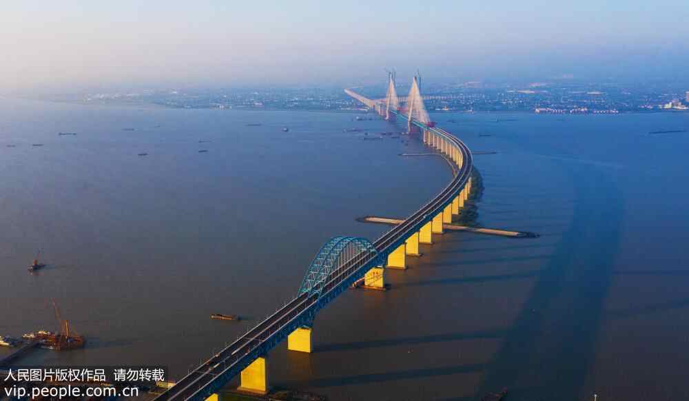 沪通长江大桥是我国“八纵八横”高铁网中沿海铁路大通道的咽喉工程。上层为双向六车道高速公路,下层为双线沪通铁路和双线通苏嘉城际客运专线。按照计划,沪通长江大桥将于2020年7月与沪通铁路同步建成通车。届时,长江南北的铁路和我国沿海铁路通道将因此贯通,为沿线以及周边城市的交通和经济发展注入新动力。丁晓春/人民图片