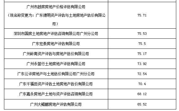 近日,广州市房屋交易监管中心发布《2018年度房地产估价行业检查工作情况的通报》(简称《通报》),对广州市75家房地产估价机构,包括在广州市备案的房地产估价机构分支机构进行了综合评分。并对对本次抽查报告质量较差的房地产评估机构进行约谈及警示提醒。