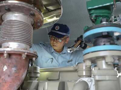 8月9日,为保障列车运行途中空调正常使用,贵阳车辆段乘务车间动力班的发电车检修工对完成值乘任务和驻场的列车空调发电车进行全面检修。进入暑运以来,贵州省持续高温,发电车检修工每天都会冒着室外30℃、室内平均50℃的高温对空调发电车进行检修,确保空调、照明等服务旅客设备设施正常使用,让旅客舒适出行。图为检修工郑毅在检查柴油发电机时“挥汗如雨”。中新社记者 瞿宏伦 摄