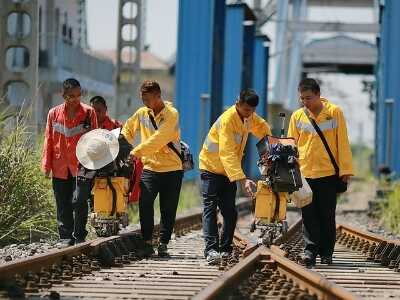 实拍“高烤”下的钢轨医生 日行10公里进行探伤作业