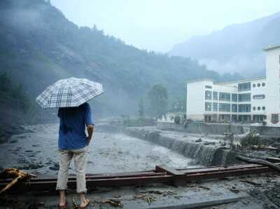 8月20日,四川阿坝州多地因强降雨发生暴雨灾害,造成阿坝州汶川县等5个县11个乡镇1.27万人受灾。汶川县三江镇、水磨镇两地安全转移1.9万余人。四川消防先后调集成都、阿坝、绵阳等地救援力量,奔赴现场开展抢险救援工作。图为汶川三江镇游客排队等待转移。中新社记者 刘忠俊 摄