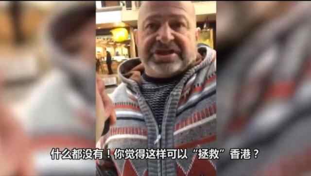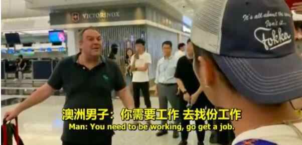 面对激进示威者的反复追问,这名澳大利亚大爷始终坚持自己的观点,并直接“硬怼”:“香港属于中国,这是全世界公认的,香港和台湾都是中国的一部分,而你应该去找个工作,去找个工作吧!”